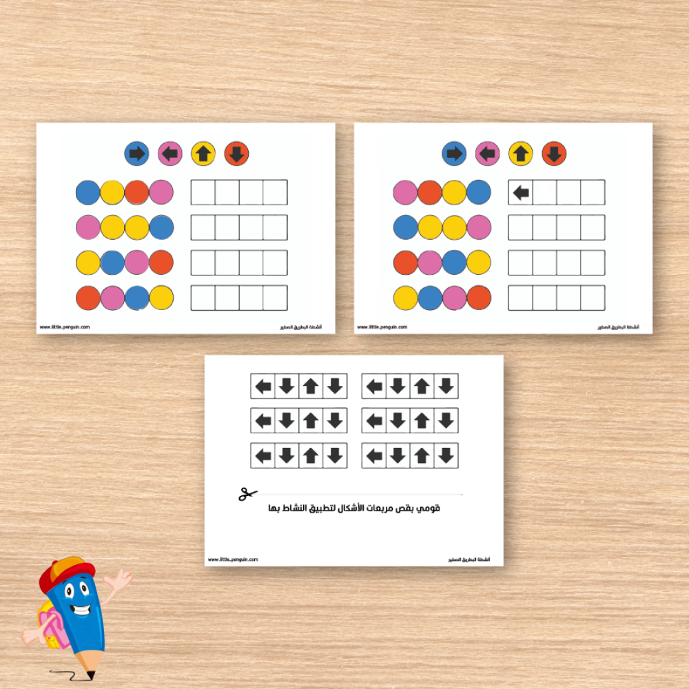 يجمع هذا النشاط بين التعلّم بالألوان وتعلّم الاتجاهات بطريقة ذكية ومبسّطة تناسب الأطفال وتُشجّعهم على استخدام ملاحظاتهم الدقيقة.