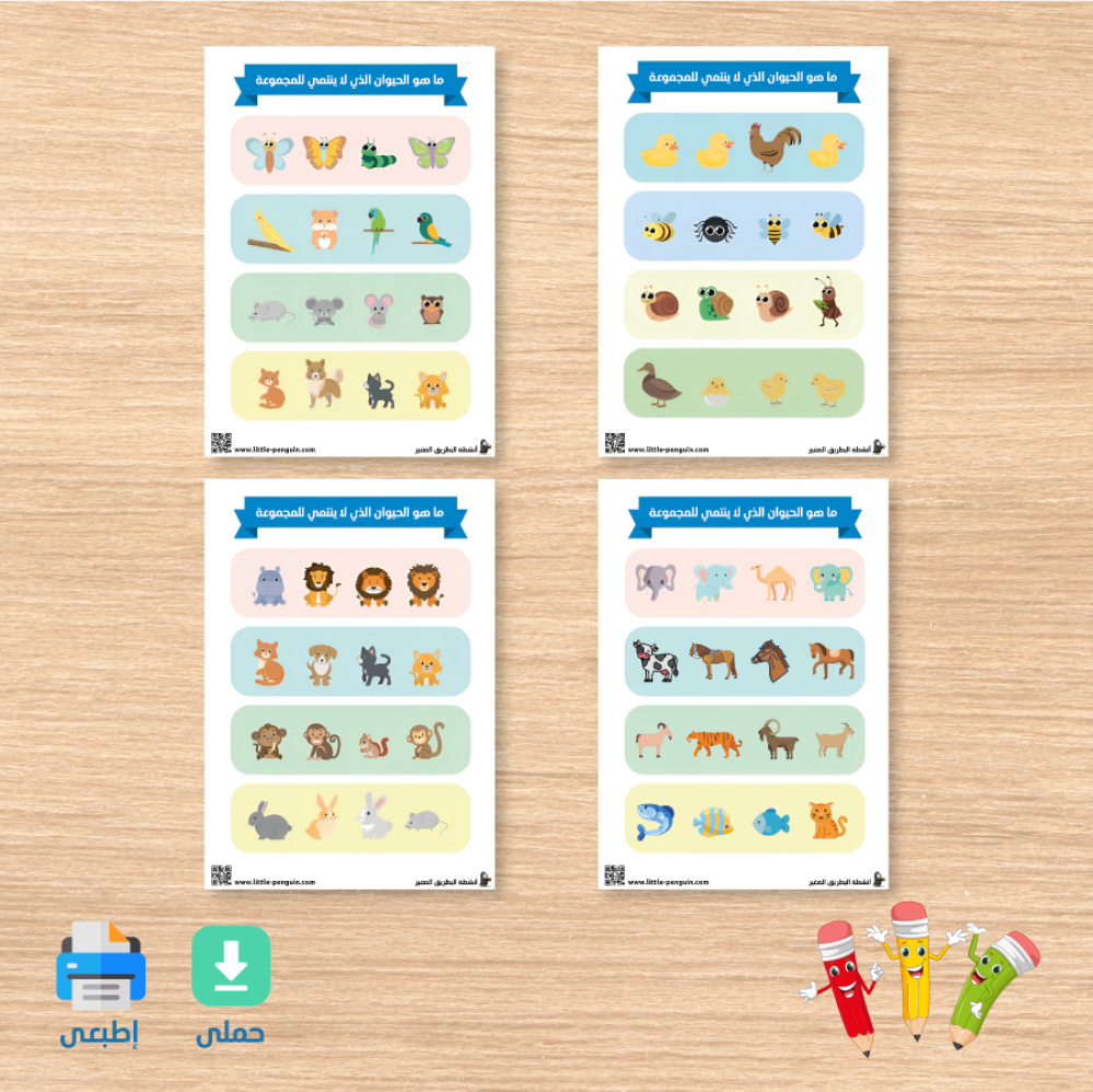امنحي طفلك فرصة لاختبار قوة ملاحظته وتفكيره المنطقي من خلال هذا النشاط المميز، حيث يتعلم التمييز بين الحيوانات وتصنيفها بطريقة مسلية ومحفزة للعقل.
