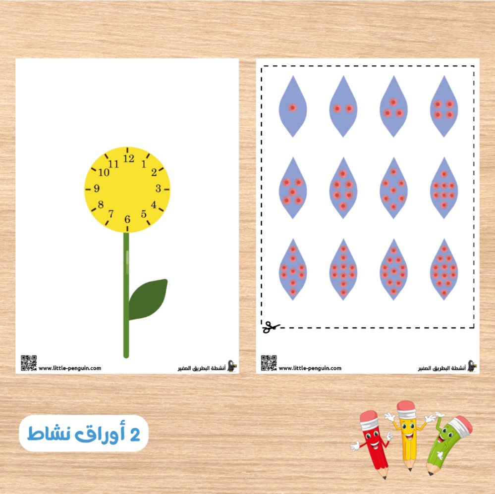 “وردة تعلم الساعة” هو النشاط المثالي لجعل تعلّم الوقت ممتعًا وملوّنًا لطفلك!