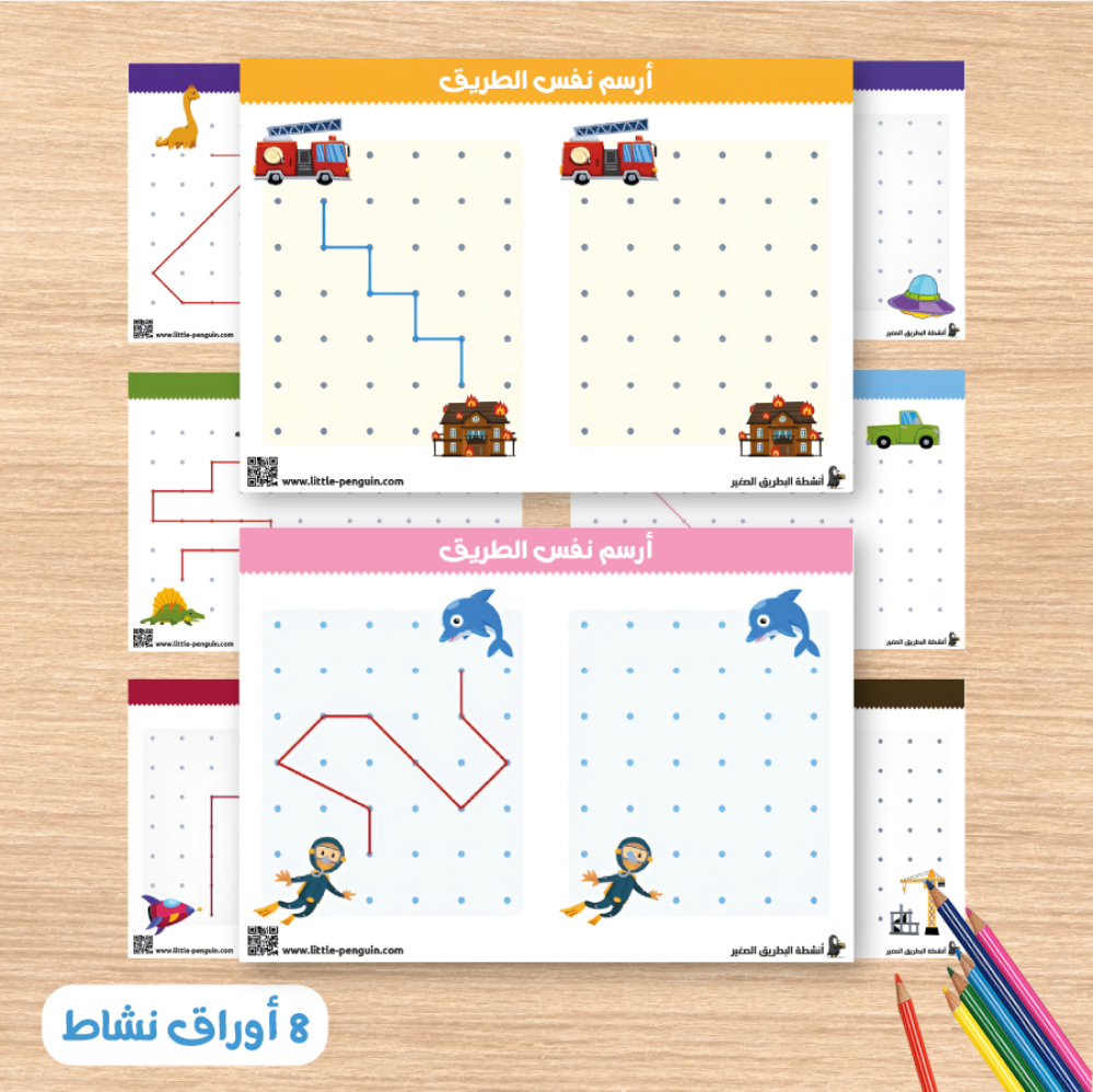 📄 عدد الأوراق: 8 أوراق متنوعة جاهزة للطباعة بصيغة PDF.