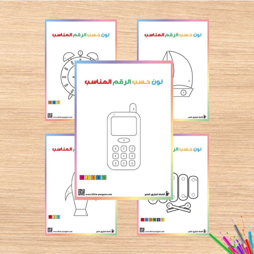 في كل ورقة، يُطلب من الطفل أن يلاحظ الصورة جيدًا، ثم يتتبع الأرقام داخل أجزاء الصورة ويُلوّن كل جزء حسب الرقم واللون المناسب له.