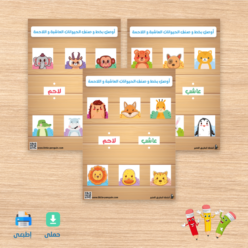 يحتوي النشاط على صور لحيوانات متنوعة، وعلى الطفل إيصال كل حيوان إلى التصنيف المناسب: