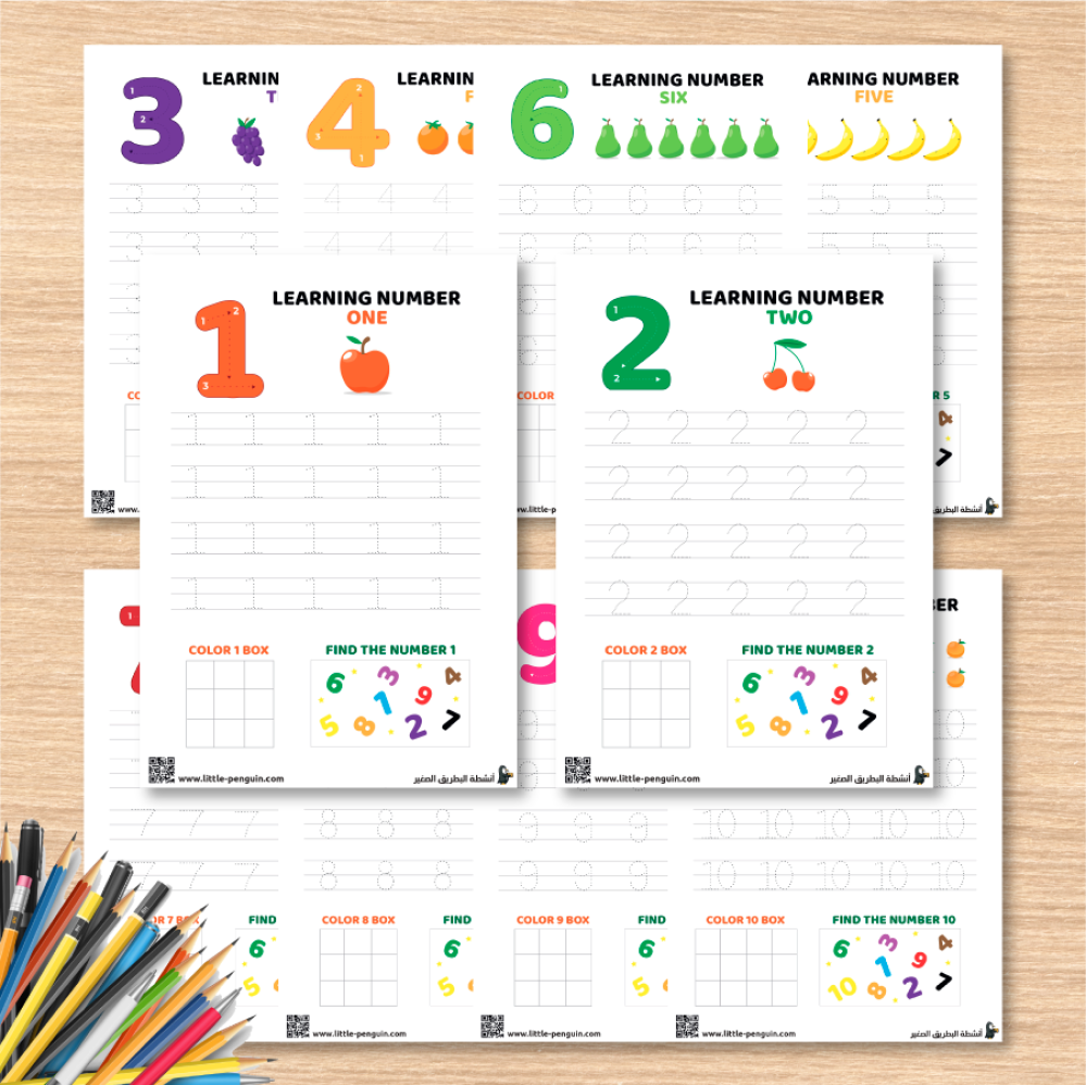 📄 عدد الصفحات: 10 أوراق مرتبة وجاهزة للطباعة بصيغة PDF – مثالية للبداية السلسة في تعلّم الأرقام الإنجليزية.