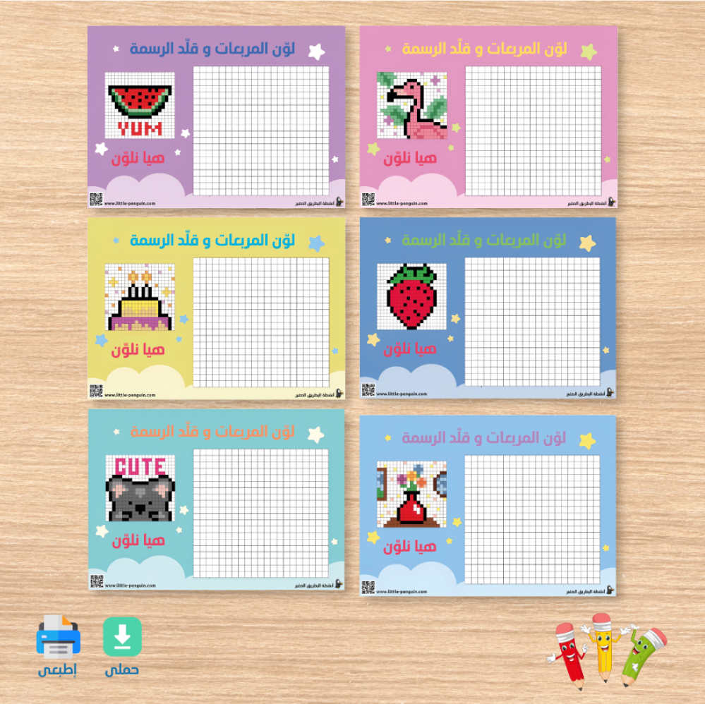 نشاط تلوين الرسمة باستخدام المربعات – ذكاء، تركيز، وإبداع بالألوان